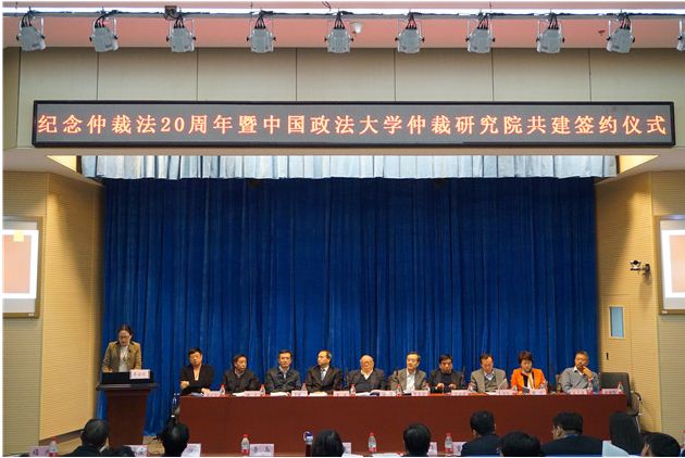 仲裁研究院共建签约仪式在我校学院路校区举行。校长黄进、我校终身教授江平,全国人大法工委民法室主任贾东明、国务院法制办政府法制协调司副司长袁诗鸣、最高人民法院民四庭庭长罗东川等国家机关领导出席,国务院法制办中国仲裁协会筹备领导小组副组长卢云华,IBM高级法律顾问唐功远,以及中国国际经济贸易仲裁委员会、武汉仲裁委员会、北京仲裁委员会等20余家仲裁机构领导应邀出席,部分专家学者、律师、社会团体、企事业单位等各界嘉宾共百余人参会。论坛由法律硕士学院院长费安玲主持。