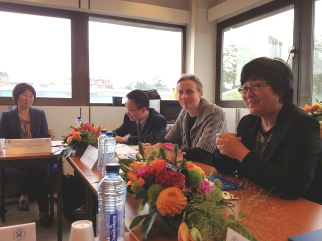 9月18日,我院代表团抵达荷兰莱顿,与莱顿大学法学院举行了座谈会。出席座谈会的荷方代表有莱顿大学法学院院长瑞奇·劳森(Rich Lawson)教授、 国际私法研究所主任瑟尔德·斯卡夫曼(Sierd J. Schaafsma)教授、民法研究所主任捷普·赫曼(Jaap Hijma)教授、商法中心主任马特阿斯·海特琴(Matthias Haentjens)教授、国际税法中心主任基·范·来德(Kee Van Raad)教授、国际航空与空间法主任帕博罗·门德斯(Pablo Mendes de Leon)教授以及外事办公室主任安特·范·三德维琪(Annette van Sandwijk)女士等。劳森院长愉快的回忆了去年11月访问我校并与黄进校长会谈的经历,对我校、尤其是我院与莱顿法学院的合作进行了回顾,并作出高度评价;随后,杜新丽教授向莱顿法学院的各位教授详细介绍了我校及我院的情况,还对今后进一步加强合作交流提出了具体的建议与设想。两院代表团各位代表随后就在科研、互派教师与学生、暑期班课程的开设等诸多具体事项展开了讨论,并达成广泛一致。杜新丽教授还代表我院邀请劳森院长与斯卡夫曼教授近期来我校进行短期访问与讲学,两位教授愉快的接受了邀请。