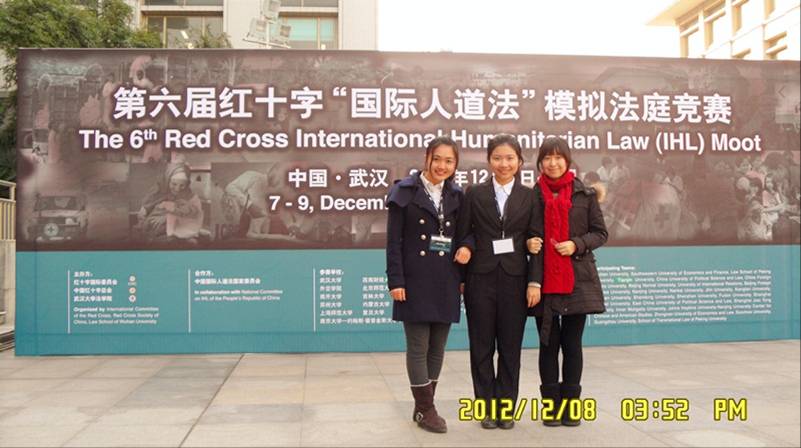 2010级本科生谢南希(研究助手)组成的我校代表队从全国28支参赛大学中脱颖而出,夺得本届大赛冠军,并将由红十字国际委员会资助参加2013年3月在香港举行的第十一届亚太高校国际人道法模拟法庭比赛。至此,自从中国高校间举行该赛事以来,我校已连续五届获得前往香港参加亚太赛的资格,也是第三次夺得全国冠军。我校代表队曾在2008年、2009年连续两年夺得冠军,在2010年夺得亚军,在2011年夺得季军,再次证明了我校在这一国际法模拟法庭比赛中的实力。