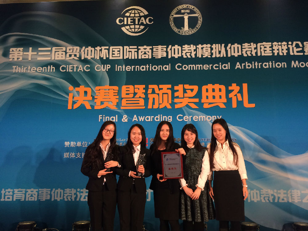 的支持下,在教练与队员们的共同努力下,我校代表队在诸多强队的角逐中脱颖而出取得优异赛绩,充分展现了我校学子良好的法学素养与英语水平,极大提升了我校在全国商事模拟仲裁竞赛领域的知名度和影响力。来自我校首届涉外实验班的三名同学周芙宇、李娴姝、杨子仪在比赛中展示出的水平和做出的贡献也体现了我校涉外实验班的培养成果。