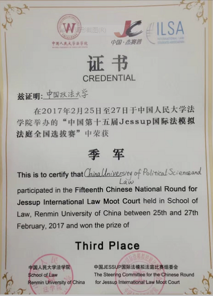 2017年2月25日至27日,第十五届杰赛普(Jessup)国际法模拟法庭大赛中国赛区选拔赛在中国人民大学举行,此次比赛共有来自全国的49支高校代表队伍参加。