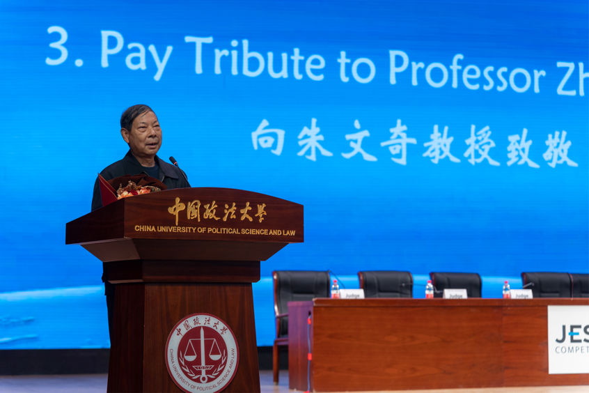 和朱利江教授团队以及各法官对赛事顺利举办作出的奉献和指导,指出杰赛普赛事的真正意义并不以输赢来衡量,而是在比赛过程中学到的口头辩护、研究和批判性思维等技能,希望各选手利用此次机会,让比赛成为自己未来几十年生活中美好的一部分。