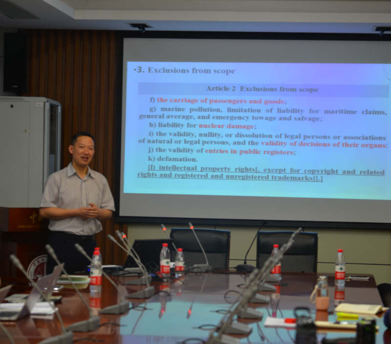 接下来,何其生老师就《法院判决公约》谈判中的博弈这一问题展开,重点就公约适用范围进行了详细的说明。关于适用对象,公约第三条对judgement界定为“法院对任何实体问题做出的决定”,调解书是法院对当事人就实体问题提出的解决方案的认可决定,应当属于公约的适用范畴。关于适用事项,公约中提及的“民商事项”,不是根据国内法律界定,而是一种自治性事项,由争议的事项来决定是否属于“民商事项”,这就解答了能否将我国的刑事附带民事诉讼纳入公约适用范围的问题。同时,明确了公约中所称的“承认”,是对所赋予的权利和义务的承认,而非对事实或者法律的承认。关于排除事项,公约规定了四类排除事项,一是有专门公约规定的事项,二是公共管理事项,三是诽谤,四是知识产权类事项。另外,何老师结合具体条文,对公约规定的管辖权过滤器、承认和执行的基础、拒绝的条件这几个主要问题进行了解读。