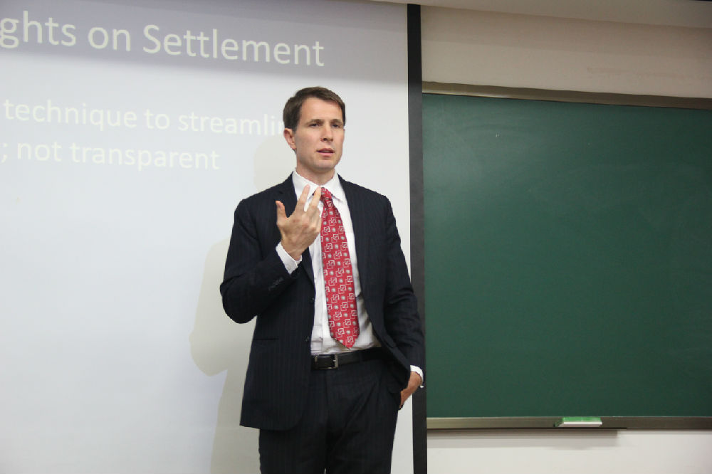 本次讲座围绕战后补偿诉讼展开, Timothy Webster教授针对二战结束后七十多年以来,受害者持续在中国、日本、韩国和美国提起诉讼的情况进行了分析。Timothy Webster教授从案例入手,为在场同学们介绍了受害人针对新日本制铁、日本钢管、日本三菱、花冈山煤矿所提起的四起诉讼,并提出了假定的正义理论来解释其中的多重动机和结果。虽然原告败诉的情形居多,但是他认为这些诉讼本身也有助于建立事实,打击“否认主义”,有利于明确各方责任,促进法律学说的发展。Timothy Webster教授认为这种模式对世界其他地区的人权诉讼也有一定程度的影响,即使它反映的是当代东亚独特的历史和政治背景。